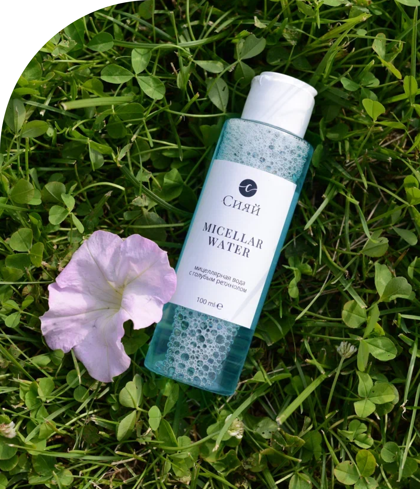 Рады представить новинку — мицеляррная вода «СИЯЙ», созданная специально для нежной женской кожи. Очищающее средство для лица с голубым ретинолом и сбалансированная pH формула одновременно эффективно снимает макияж, очищает, стимулирует обновление клеток и успокаивает кожу без лишнего трения.